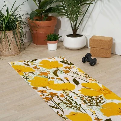 Alison Janssen YELLOW ROAMING WILDFLOWERS (6mm) 70″ X 24″ Yoga Mat – Society6