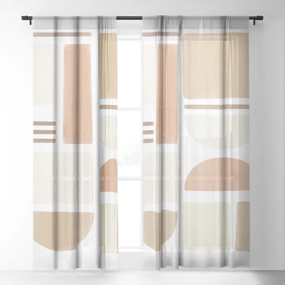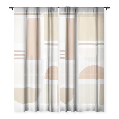 BohomadicStudio Geometric Shapes In Creme And Soft Pink Single Panel Sheer Window Curtain – Society 6